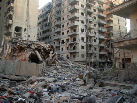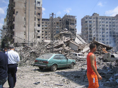 أنزل العدو جام غضبه على ما تبقى من جسور ومحطات الكهرباء والمصانع فقد دمر مصنع غندور وحولت أحياء في الضاحية الجنوبية إلى ركام. فكنا نسمع أصوات الانفجارات الهائلة طوال الليل وحتى موعد وقف إطلاق النار الساعة الثامنة صباحاً (يوم الاثنين) لم يوفر العدو دقيقة واحدة إلا واستهدف بها الجنوب والضاحية تعبيراً عن حقده وهمجيته ودليل ساطع على فشله في تحقيق انتصار على المقاومة التي ردته على أعقابه مندحراً يجر خزي وذل الهزيمة فأخذ يتأثر بطيرانه من المدنيين العزل. هذا هو العدو الصهيوني وهذه حقيقته. ونحن لم نوفر الوقت حيث كان شوقنا عارم لزيارة الضاحية والإطلاع على مدى الدمار الذي لحق بها. ففي صباح يوم الاثنين 14/8 توجهنا للضاحية، ويا لهول ما شاهدنا النيران ما زالت تشتعل في بعض الأبنية – الدخان كثيف، العمارات وقد تحولت إلى ركام، رائحة الدخان والجثث وغبار حطام الأبنية. نعبر من شارع إلى شارع فوق الركام في حارة حريك عمارات مهدومة وبعضها محترق وبعض العمارات نصفها مهدم والبعض محطم النوافذ والأبواب.