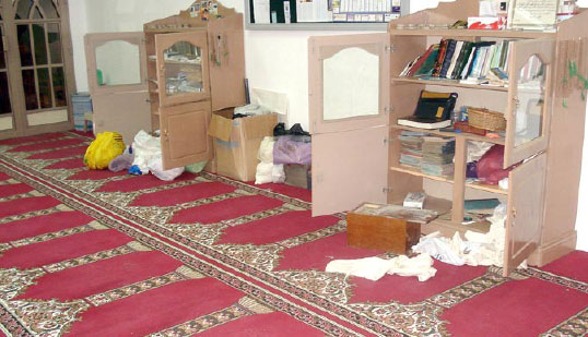 قيم مسجد الكاظم »المقبرة« سعيد علي إبراهيم أفاد بأن المسجد تم اقتحامه من الباب الخلفي وتمت سرقة جهاز لتشغيل الأقراص المرنة »دي في دي« وتخريب ورمي الأكفان وعدد من الكتب والأدعية وغيرها على الأرض.