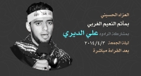 بمناسبة ذكرى استشهاد السيدة فاطمة الزهراء عليها السلام - الرواية الثالثة يدعوكم مأتم النعيم الغربي للعزاء داخل المأتم بمشاركة الرادود الحسيني " علي الديري " يوم الخميس ليلة الجمعة الموافق ٣ / ٤ / ٢٠١٤م بعد قراءة الخطيب مباشرة قراءة الخطيب الساعة ٨:١٥ مساء مأجورين