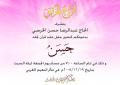 يتشرف الحاج موسى الجد وأخيه الحاج حمزة الجد بدعوتكم لحضور عقد قرآن نجليهما (صالح) و (جعفر)، وذلك في يوم الأربعاء ليلة الخميس الموافق 17 ديسمبر 2008 في تمام الساعة السابعة والنصف مساءً في مأتم النعيم الغربي. وبحضوركم تكتمل الأفراح