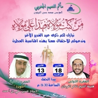 من الذي صام؟ الدرازيون أم النعيميون؟   |    في ذمة الله الشَّابة زهراء عبدالله ميرزا صالح   |   ذمة الله تعالى الحاجة جميلة حسن عبدالله    |   على السرير الأبيض الحاج خليل إبراهيم البزاز أبو منير    |   برنامج مأتم الجنوبي في ذكرى ولادة السيدة الزهراء    |   في ذمة الله حرم الحاج عبدالله سلمان العفو (أم ياسر)   |    في ذمة الله الطفلة زهراء جابر جاسم عباس   |   نبارك للأخ الطالب محمد حسن علي ثابت حصوله على الماجستير في إدارة الأعمال    |   رُزِقَ الأخ عبدالله علي آل رحمة || كوثر || 12/12/2021   |   دورة تغسيل الموتى    |