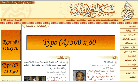 مزايا الاعلان في صفحة شبكة النعيم الثقافية:
