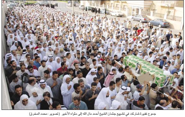شيّعت جموع غفيرة من المواطنين في الثالثة من عصر أمس خطيب المنبر الحسيني الشيخ أحمد مال الله الذي فارق الحياة فجر أمس بعد نقله إلى المستشفى الدولي ­ من المأتم الغربي مروراً بتقاطع مدرسة حطين بحضور السيدعبدالله الغريفي ونائب محافظ العاصمة عبداللطيف السكران وعدد من النواب.