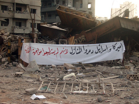أنزل العدو جام غضبه على ما تبقى من جسور ومحطات الكهرباء والمصانع فقد دمر مصنع غندور وحولت أحياء في الضاحية الجنوبية إلى ركام. فكنا نسمع أصوات الانفجارات الهائلة طوال الليل وحتى موعد وقف إطلاق النار الساعة الثامنة صباحاً (يوم الاثنين) لم يوفر العدو دقيقة واحدة إلا واستهدف بها الجنوب والضاحية تعبيراً عن حقده وهمجيته ودليل ساطع على فشله في تحقيق انتصار على المقاومة التي ردته على أعقابه مندحراً يجر خزي وذل الهزيمة فأخذ يتأثر بطيرانه من المدنيين العزل. هذا هو العدو الصهيوني وهذه حقيقته. ونحن لم نوفر الوقت حيث كان شوقنا عارم لزيارة الضاحية والإطلاع على مدى الدمار الذي لحق بها. ففي صباح يوم الاثنين 14/8 توجهنا للضاحية، ويا لهول ما شاهدنا النيران ما زالت تشتعل في بعض الأبنية – الدخان كثيف، العمارات وقد تحولت إلى ركام، رائحة الدخان والجثث وغبار حطام الأبنية. نعبر من شارع إلى شارع فوق الركام في حارة حريك عمارات مهدومة وبعضها محترق وبعض العمارات نصفها مهدم والبعض محطم النوافذ والأبواب.