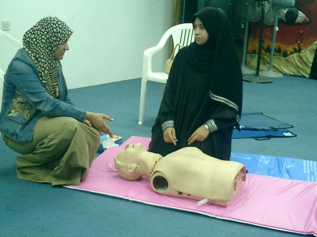 بنجاح تام إجتازت 31 مشاركة إمتحان دورة مسعف لكل بيت وحصلن على بطاقة وشهادة المسعف الأولي، حيث نظمت هذه الدورة لجنة فتيات النعيم بالتعاون مع جمعية الهلال الأحمر البحرينية،وذلك في الفترة من 7-12/7/2007م بمركز شباب النعيم.