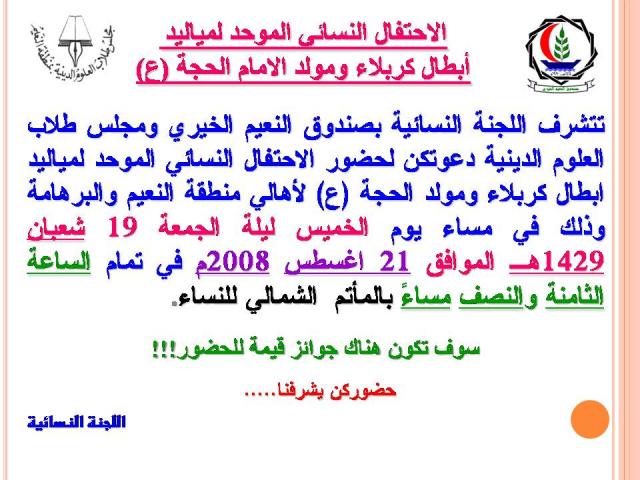 احتفال مياليد كربلاء للجنة النسائية