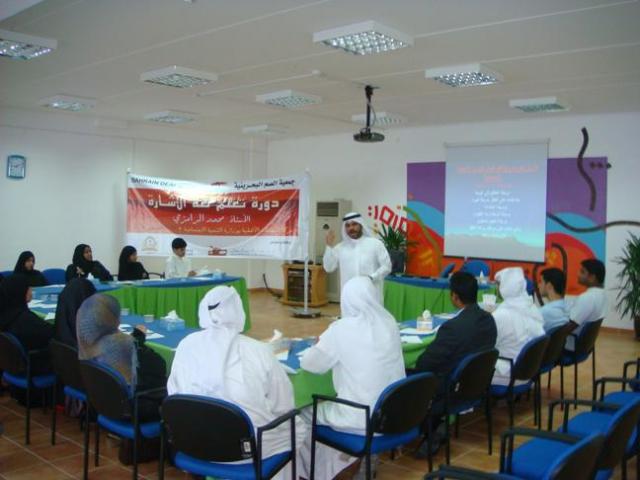 نظمت جمعية الصّم البحرينية دورة بعنوان " تعليم لغة الإشارة " لأولياء الأمور والمهتمين ومعلمي ومترجمي لغة الإشارة في الفترة من 17- 21 أغسطس  2008م، حاضر فيها خبير واستشاري لغة الإشارة الأستاذ محمد خلف الرامزي من دولة الكويت الشقيقة. يُذكر أنّ الدورة التي استمرت طوال أسبوعاً كاملاً، أُقيمت في قاعة مركز المنظمات الأهلية التابع لوزارة التنمية الاجتماعية في مقره على شارع الخدمات بمنطقة توبلي. وقد شارك فيها أكثر من 50 مشارك ومشاركة من مختلف الجهات الحكومية والأهلية، موزعين على الفترتين الصباحية والمسائية. جدير بالذكر أنّ الدورة أقُيمت بدعم عضو المجلس البلدي بالمنطقة الوسطى الأستاذ عبد الرزاق حطّاب وجريدة الأيام ومخبز المرزوق.