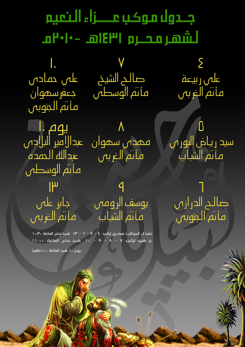 جدول موكب عزاء النعيم الموحد لشهر محرم الحرام 1431هـ