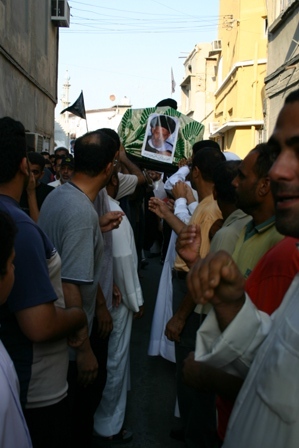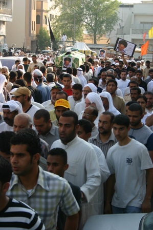 انطلقت المسيرة التي تقدمها جمع من كبار علماء البحرين وطلاب العلوم الدينية بالمنطقة والوجهاء والأعيان، انطلقت بعد الصلاة لتجوب شوارع النعيم غربا ووسطا حيث تم المرور على منزل الفقيد العزيز ثم شرقا وجنوبا لتنتهي في مقبرة النعيم حيث المثوى الأخير للفقيد الراحل. تغمد الله الفقيد بواسع رحمته وألهم محبيه الصبر والسلوان.