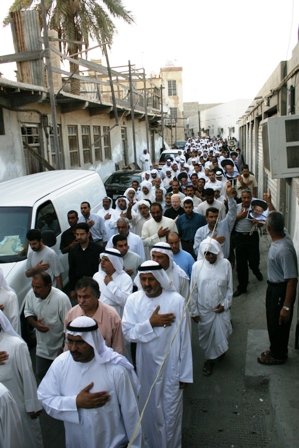 وقد ابتدأت مراسم اختتام مجلس العزاء بقراءة حسينية للملا محمد الماضي، ثم خرجت الجموع الحاضرة في مسيرة عزاء تأبينية توجهت نحو بيت الفقيد الراحل، ثم عادت إلى حيث مقبرة النعيم والقبر الذي ضم جثمان الراحل العزيز. وقد تليت هناك بعض الأبيات من مصائب أهل البيت (ع)، ثم قدم الحشود تعازيهم الخالصة لأهالي الفقيد.