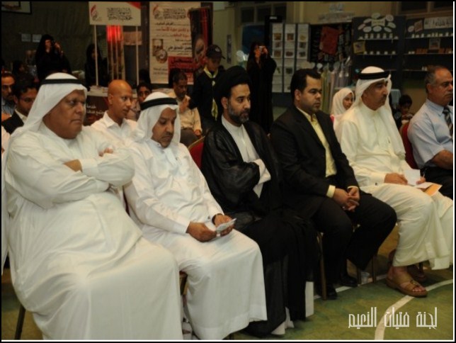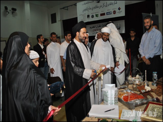 تقدم كل من الأستاذ غازي عبد المحسن " رئيس مركز شباب النعيم " ,الأخت نعيمة مهنا " رئيسة لجنة الفتيات", السيد محمد هادي الغريفي , الشيخ جاسم المؤمن و عدد من أعضاء و إدارة مركز شباب النعيم مصاحبين الأستاذ الأستاذ حسين المديفع ممثل مجموعة الطشاني القابضة لقص شريط المعرض و التنقل بين زواياه المختلفة و المميزة.