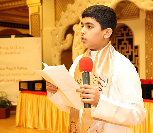 برعاية كريمة من سعادة الدكتور مجيد العلوي وزير العمل نظم صندوق النعيم الخيري بالتعاون مع مركز شباب النعيم الحفل السنوي لتكريم المتفوقين الرابع عشر ( 14 ) في صالة مرمريز تحت شعار ( كرم إبنك ) وذلك في مساء يوم الإثنين 6-9-2010م الموافق 26 رمضان من عام 1931هـ. وقد حضر نيابة عن وزير العمل الوكيل المساعد لشئون التدريب السيد رضا حبيل.