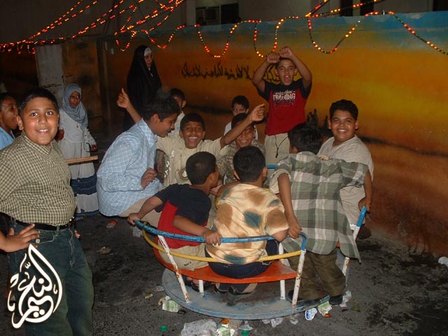الأطفال يشاهدون مسرحية عرضت قرب حوزة الغريفي