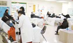 شهدت حملة الإمام الحسين عليه السلام للتبرع بالدم الخاصة بالنساء مساء أمس إقبالا جماهيريا منقطع النظير لم يسبق له مثيل من قبل على مستوى حملات التبرع الخاصة بالنساء في المملكة حيث بلغ عدد النساء البحرينيات المتقدمات للتبرع أكثر من 384 متبرعة،