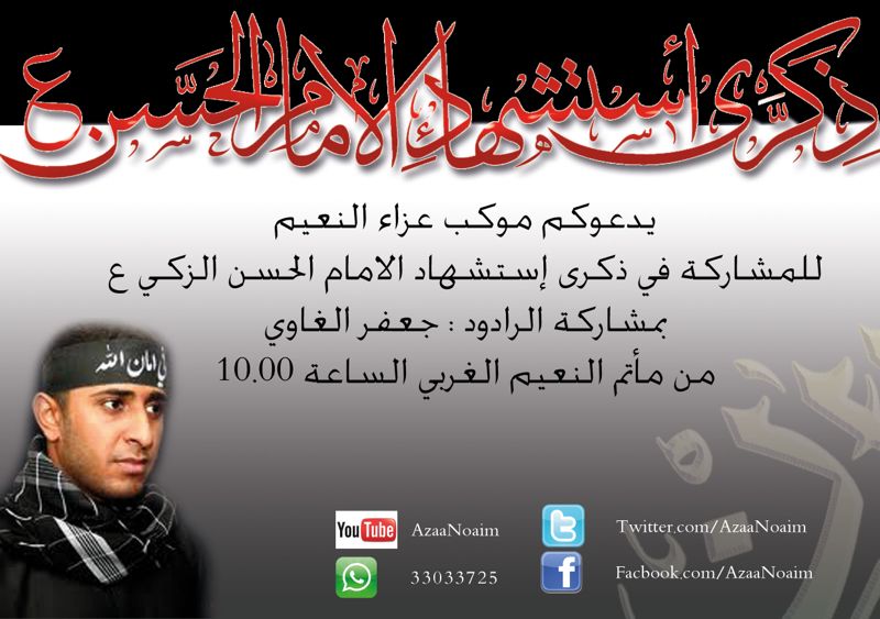 من الذي صام؟ الدرازيون أم النعيميون؟   |    في ذمة الله الشَّابة زهراء عبدالله ميرزا صالح   |   ذمة الله تعالى الحاجة جميلة حسن عبدالله    |   على السرير الأبيض الحاج خليل إبراهيم البزاز أبو منير    |   برنامج مأتم الجنوبي في ذكرى ولادة السيدة الزهراء    |   في ذمة الله حرم الحاج عبدالله سلمان العفو (أم ياسر)   |    في ذمة الله الطفلة زهراء جابر جاسم عباس   |   نبارك للأخ الطالب محمد حسن علي ثابت حصوله على الماجستير في إدارة الأعمال    |   رُزِقَ الأخ عبدالله علي آل رحمة || كوثر || 12/12/2021   |   دورة تغسيل الموتى    |