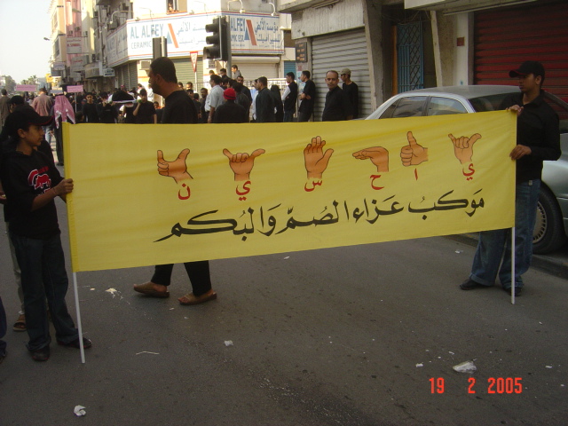 أقامت لجنة الصم و البكم بجمعية مأتم محمد حسن بالنعيم الجنوبي موكب عزاء للصم و البكم في يوم العاشر من المحرم و الذي يعد الأول من نوعه في العالم, و قد شارك في الموكب ما يربو على 30 شخص ممن يعانون من الاعاقة في النطق و السمع مرتدين قبعات سود. و قام بتنظيم الموكب و تنظيم الشعارات الخاصة بهم و الذي يعبرون عنها بلغة الاشارة عدد من المترجمين المتطوعين .تأتي هذه الخطوة بعد نجاح مآتم الصم و البكم لكل من النساء و الرجال للعام الثاني على التوالي حيث يقوم أحد المترجمين بترجمة المجلس الحسيني للصم من الرجال و كذا تقوم احدى المتطوعات بالترجمة للنساء بمأتم النساء و تأتي هذه الفعاليات لدمج هذه الفئة مع المجتمع