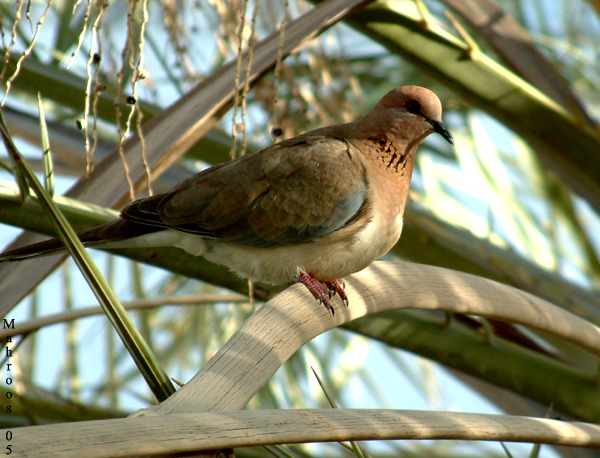 لم يكن منتشراً قبل 30 عاماً في مملكة البحرين، ولم يكن محل اهتمام من باعة الحمام والطيور فسعره زهيد جداً وهو نوع واحد فقط! يتغذى على كلّ أنواع الحبوب، والديدان الصغيرة والفواكه والأغصان الغضة.