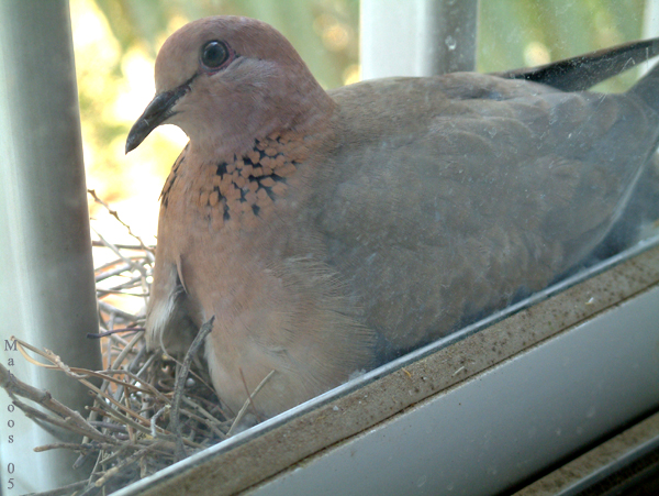 عُرف عن الحمام انّه لا يملّ التكاثر في العام كلّه! يشبه الإنسان!! وإن كانت ولادات الإنسان تكثر في الصيف! في مستشفى جد حفص للولادة قالت لي ممرضة :"الصيف موسمهم". لم أفهمها!! سألتها فضحكت! الذكر يجلب مواد البناء والأنثى تهندس العش وتبنيه! والنظر في أعشاش الحمام المطوق غير مغرٍ! ربّما لأنّ المهندسة أنثى؟!! في نافذة أخرى وجدت عشاً به بيضة واحدة فقط! كيف؟ هذا الحمام يضع بيضتين يفقس بعد 14 يوما! ربما سقطت واحدة، وهذا يحدث كثيراً. وربما شربها غراب مولع ببيض الحمام كعادته القميئة!! يقلب الحمام بيضه حتى يأخذ كل جزء في البيضة نصيباً من حرارة ريش وجسم الحمامة.