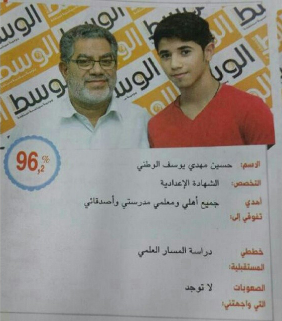 الحاصلين على تقدير الامتياز من أبناء منطقة النعيم للعام الدراسي 2014