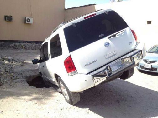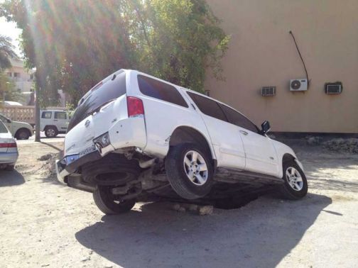 نجت مواطنة بحرينية أمس الأربعاء (6أغسطس/آب 2014) بعد أن سقطت سيارتها  بداخل حفرة عميقة في منطقة النعيم ، وقد تولت الرافعة العمل على إنتشالها من داخل الحفرة . وعن تفاصيل الواقعة ، قال أحد الأهالي " أن صاحب الأرض في شهر رمضان قام باحضار غرافة للتأكد من عدة أمور متعلقة بالبناء ، حيث قامت الغرافة بحفر حفرتين تبين لاحقاً وجود ظهور ماء بداخلهما ، مما جعله بوضع عدد من الطوب ، ولكن نتيجة عبث الأطفال عصر كل يوم قاموا بالقاء ذلك الطوب بالحفرة ، وأصبحت بذلك دون حواجز أو شيء يمنع دون وقوع سيارة  بداخلها ، مثل الذي حدث للمواطنة التي فوجئت لحظة قدومها بوقوع السيارة  بداخل الحفرة ، والحمد لله أنها لم تتأذى بالحادث ، ونتمنى من الجهات
