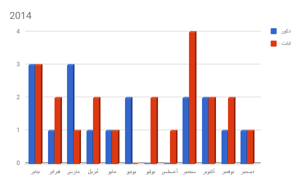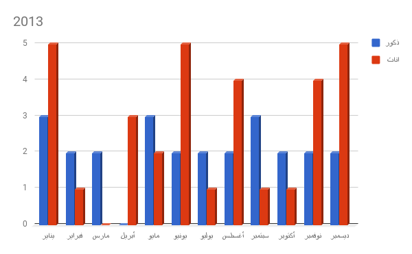 وبحسب إحصائيات شبكة النعيم الثقافية،كانت أكثر الأشهر التي وقعت فيها حالات الوفاة يناير 2013 وأكتوبر 2015 ومارس 2016 ومارس 2017 بمعدل 8 أشخاص.